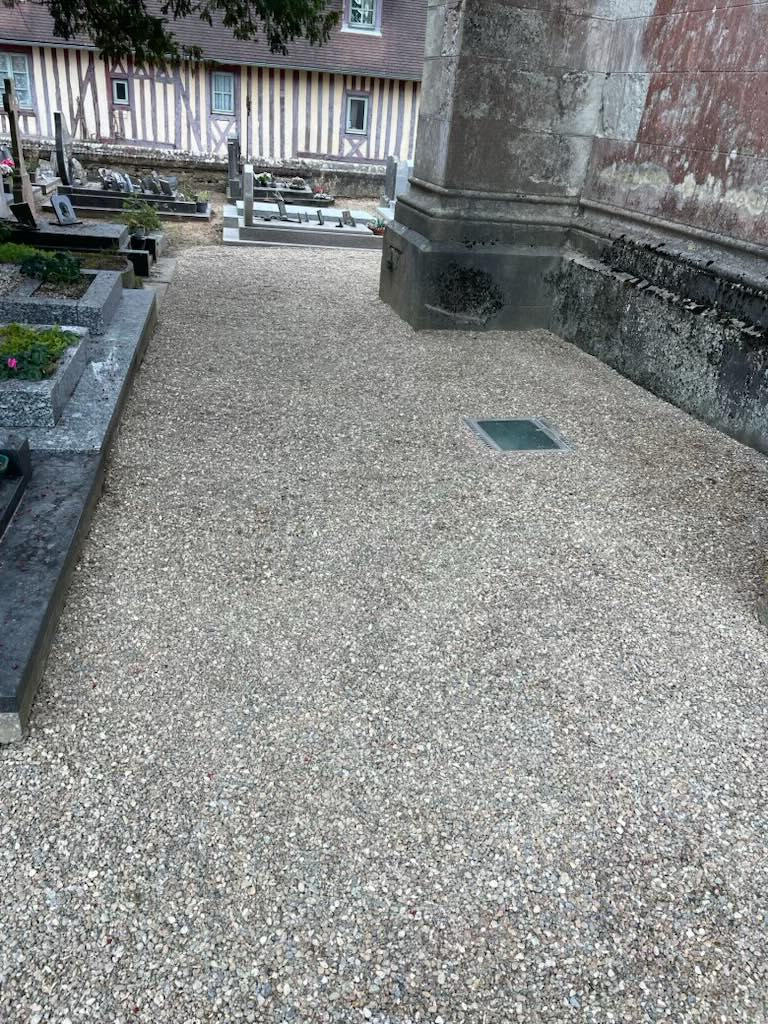 Ainsi, des allées gravillonnées sur plaque alvéolées permettent une meilleure accessibilité aux personnes en fauteuil roulant et les contre-allées autour des concessions seront engazonnées dès le printemps 2026. Cet engazonnement permettra une meilleure préservation de la biodiversité et garantira un cadre plus naturel et apaisant.